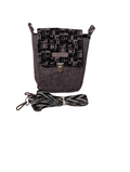 This is the Abstract Charcoal Mallory Mini Crossbody Bag. Constructed with black and gray abstract cotton and charcoal essex linen. Features interior slip pocket and zipper pockets.