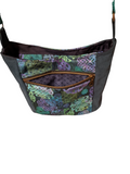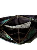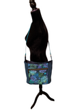 Celtic Circles Shoulder Bag was designed with Sincerely Jens Pattern Groups UNG Hobo Bag Pattern. Created with Celtic Circles Cotton, Teal Corduroy, and lined with Navy Nylon Twill. Features front zippered pocket, interior zippered pocket and slip pocket.