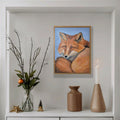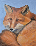 This painting captures the quiet beauty of a resting fox, its fiery coat glowing with warmth against a soft background. The fox’s calm gaze and curled pose reflect both strength and gentleness, inviting a sense of peace and closeness with nature.