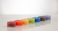Enjoy these gorgeous coloured tealights during your meditation or yoga practice and beyond. Our 100% beeswax chakra tealight set includes one tealight coloured to represent each of the chakras. Each tealight is hand poured in polycarbonate tealight cups to show off the beautiful colouring of the wax.