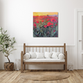 "Poppies 'Til the End" is an original oil painting that beautifully celebrates a love for poppies. The warm tones radiate a comforting embrace, inviting you to feel their gentle, heartfelt warmth.