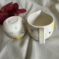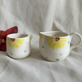 Ceramics handmade small jug with a floral design and a small cup.Great gift, great gift for young kids and elders.Great for small servings, or bedside drinkware for small liquid amounts.Size: Jug is, 3" tall x3.5" mouth x with handle 5"The...