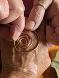 Palm Portals are a talisman you actually use.  Jewellery with a job: one draws in what you need; the other lets the rest go. These energy tools are designed as a set for the hands to keep flow balanced while you create, channel, or simply go about your witchy business. Sculpted spirals placed to project or collect energy as you gesture. Made from reclaimed raw copper, these portals direct and  harness energy to enhance your spiritual practice and energy work. Whether you're looking to balance your chakras or simply raise your vibration, Palm Portals are the perfect addition to your spiritual toolkit.